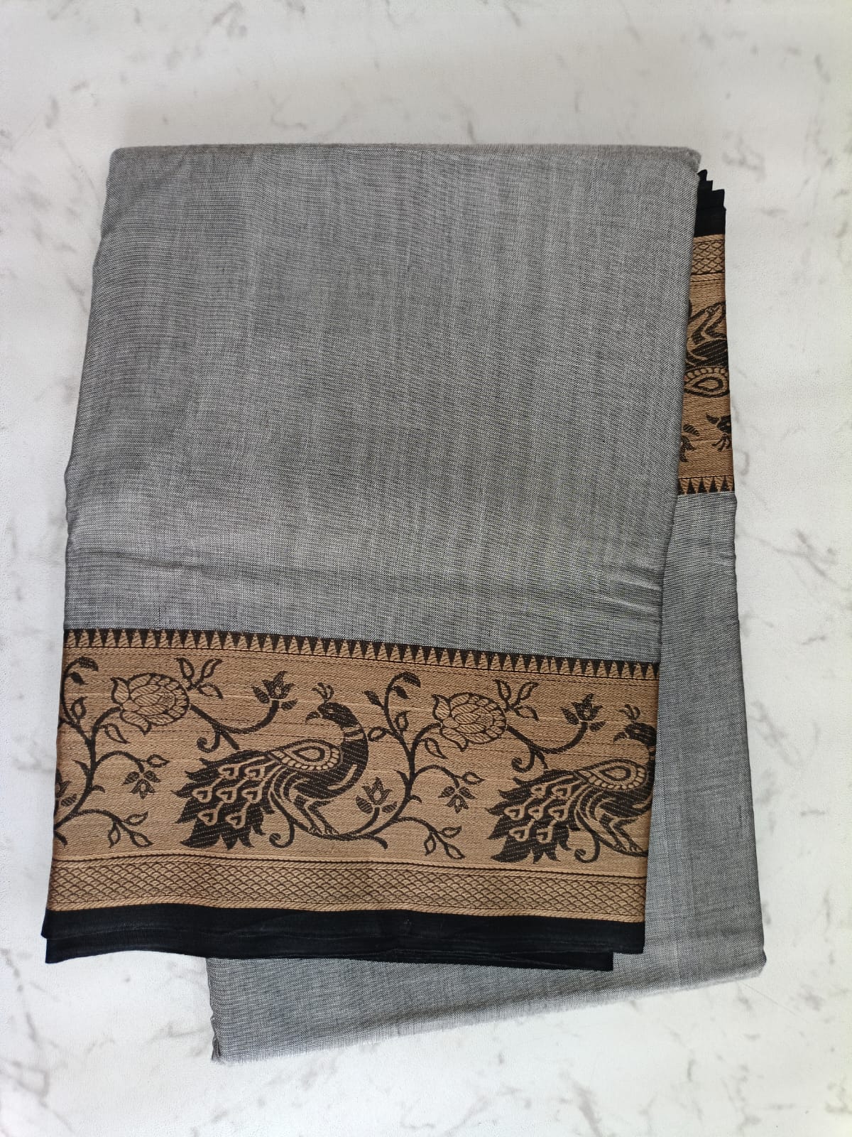 Made from high-quality mascrised cotton, this saree offers a luxurious texture and a subtle sheen that elevates its elegance.